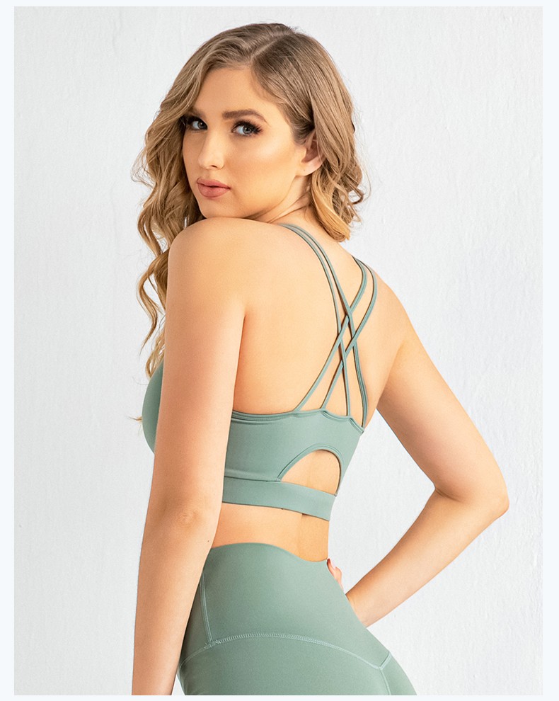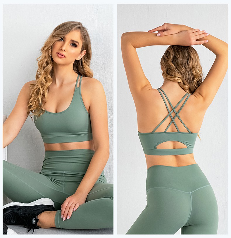 2021 Thời trang mới nylon spandex chéo trở lại thể thao áo ngực phụ nữ tập luyện quần áo